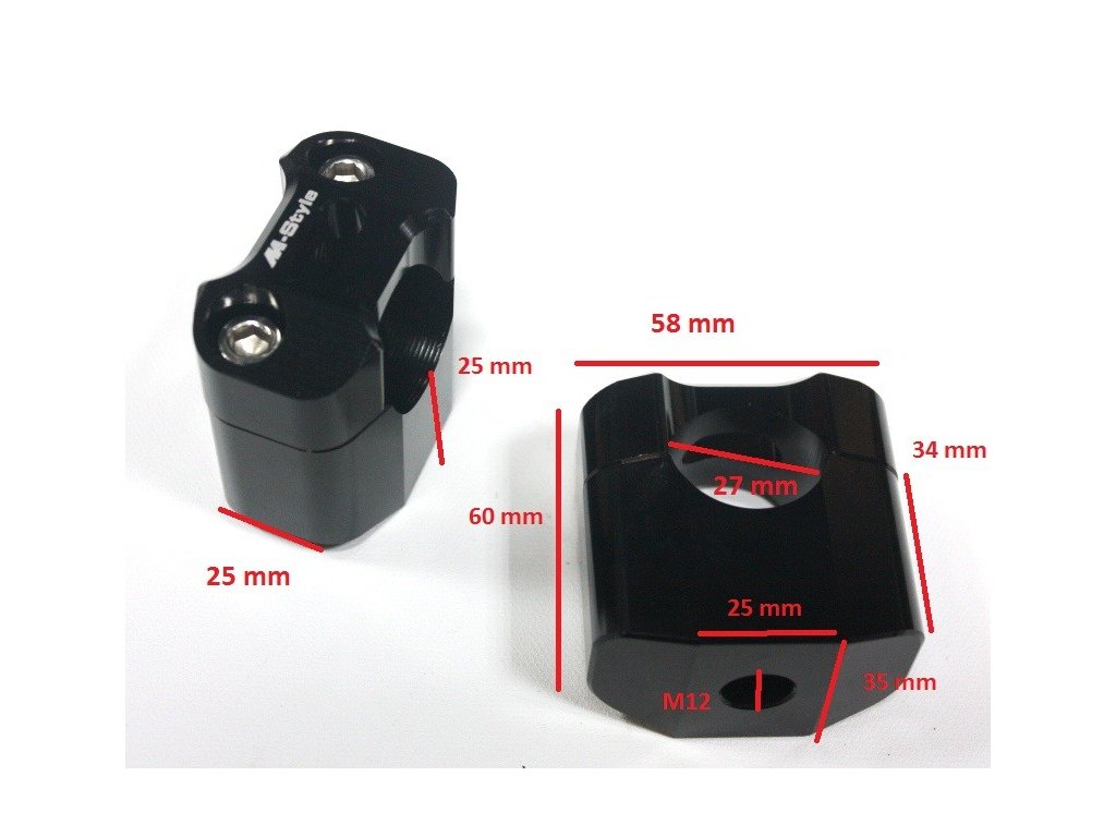 Představce na řídítka 28,6 mm výška 25 mm, šroub M12.